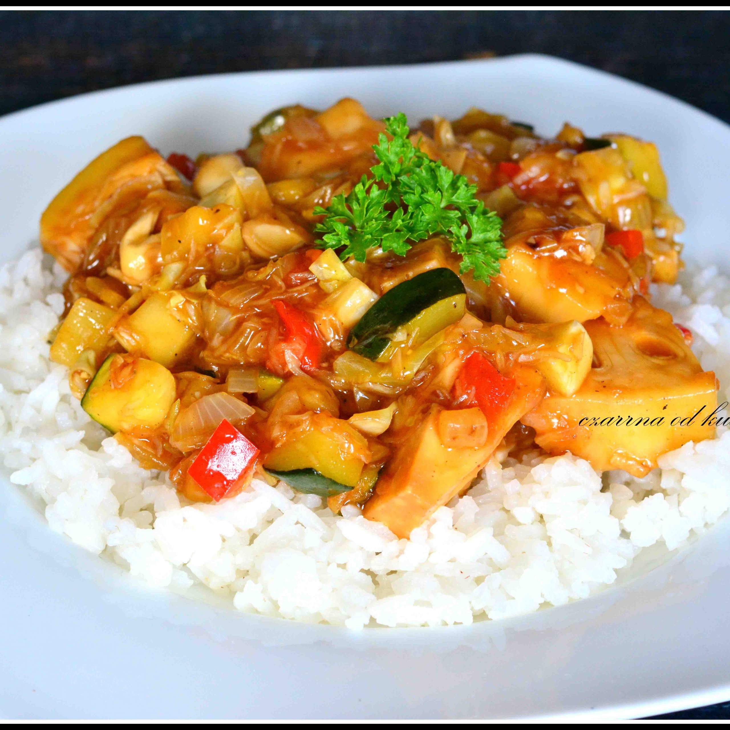Składniki: 1 puszka jackfruita 1 mała cukinia 1 cebula 1/2 czerwonej papryki…