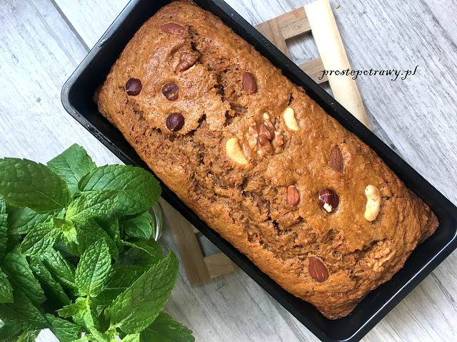 2 i 1/4 szklanki mąki pszennej lub orkiszowej3/4 szklanki cukru trzcinowegopo łyżeczce proszku do pieczenia, sody i gałki muszkatołowejszczypta soli i kardamonu1/2 szklanki oleju rzepakowego2 szklanki marchwi startej na