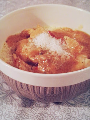 Uwielbiam wręcz połączenie kurczaka i kokosu. Najczęściej robię go w ten sposób, że do mięsa dodaję mleczko kokosowe, trochę przypraw i gotowe. Ekspresowo i smacznie. Teraz zrobiłam kurczaka podwójnie kokosowego, wykorzystałam bowiem śmietankę kokosową, oraz wiórki kokosowe. Do tego pomidory, czosnek, i papryka. Wyszło naprawdę pyszne danie, które do tego