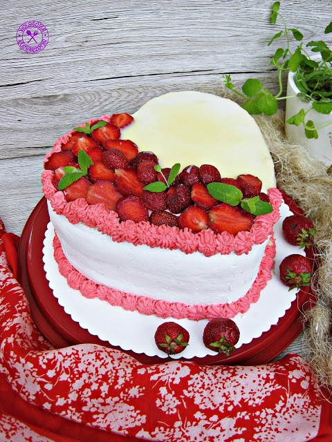 Tort z kremem truskawkowym w kształcie serca