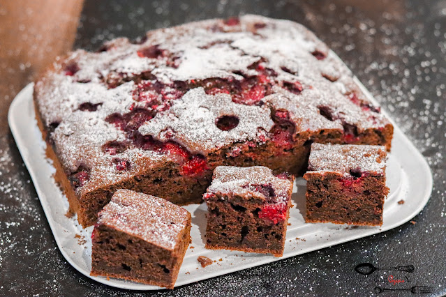 Murzynek babci to najlepsze ciasto na świecie:) Od siebie dodałam kilka malin…