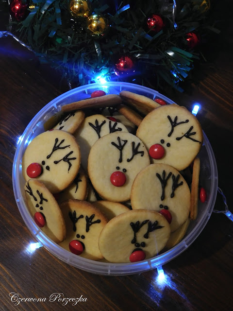 Zbliżają się święta, mój ulubiony czas bezkarnego pierniczenia i ciasteczkowania ;)W sklepach półki uginają się pod ciężarem przeróżnych świecidełek, foremek i bombek. Dajmy się porwać, niech to będzie wyjątkowy czas, inny od szarej codzienności :)Zapraszam na najprostsze i niesamowicie sympatyczne reniferkowe ciasteczka. Gwarantuję, że podczas przygotowań będziecie się świetnie