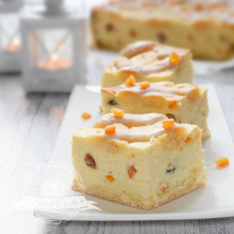 W tym roku na Święta zachciało mi się bardzo tradycyjnego sernika 🙂 A ponieważ tego przepisu brakowało mi w kolekcji, zdecydowałam się na pyszny, klasyczny sernik krakowski. Piecze się go w dużej prostokątnej formie, z dodatkiem skórki pomarańczowej i rodzynek, na kruchym cieście. Wierzch ciasta, dekoruję się wałeczkami