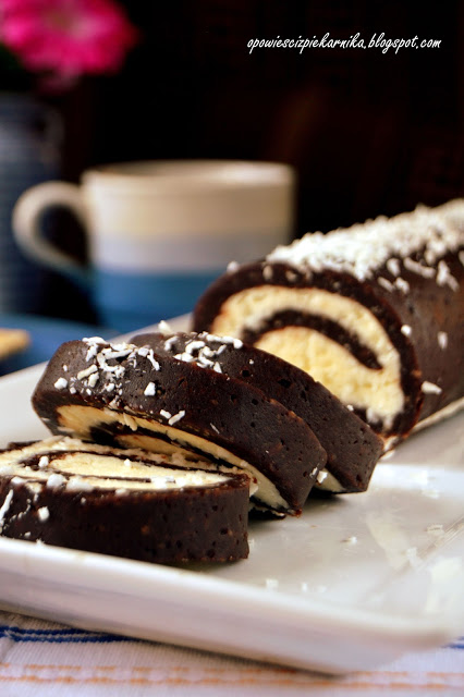 Szybka do przygotowania, niewymagająca pieczenia, bardzo smaczna rolada, z łatwo dostępnych i niedrogich składników ( no może z wyjątkiem masła, którego cena wciąż potrafi wyrwać z butów, jednak ze względów przede wszystkim smakowych, polecam w tym przepisie wyłącznie prawdziwe masełko ). To bardzo stary przepis, ja pierwszy raz zetknęłam