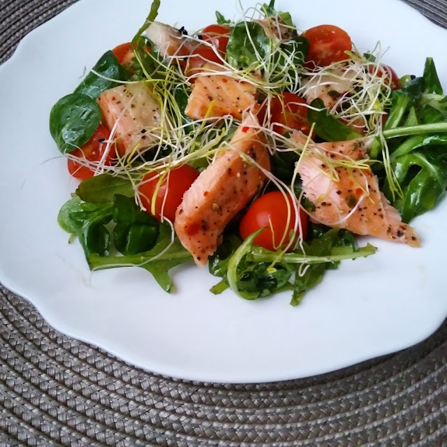 Sałatka z pieczonym łososiem i pomidorem, to mój dzisiejszy przepis na kolorową…