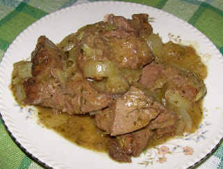 wątróbka cielęca 1 kg, olej rzepakowy 1/4 szklanki, mąka pszenna – ile potrzeba, cebula 4 sztuki, woda 4 szklanki, majeranek 2 łyżki,