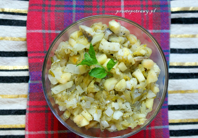 3 filety śledziowe1 cebula1 kwaskowe jabłko2 ogórki konserwowepieprz
