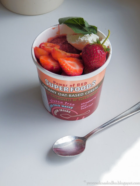 Bio owsianka na soku z jagód goji podana z truskawkami i ricottąBezapelacyjnie…