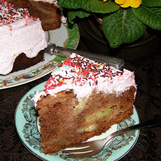 ciasto kakaowe z owocami i śmietaną galaretkową…