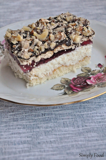 Tym razem wrzucam przepis na ciasto, które zrobiła moja mama a nie ja, ale było tak dobre, że muszę się nim tu z Wami podzielić 🙂 Składa się z kilku warstw: biszkopta, masy kokosowej, galaretki, herbatników i czekolady, a całość tworzy świetne połączenie, nie za słodkie tylko