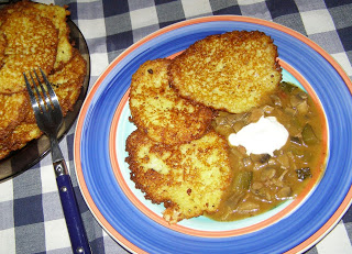 ziemniaki 1 kg, cebula 1 duża sztuka, mozzarella kulki 1 opakowanie, jajka 2 sztuki, kucharek 2 łyżeczki, pieprz mielony 3/4 łyżeczki, mąka pszenna
