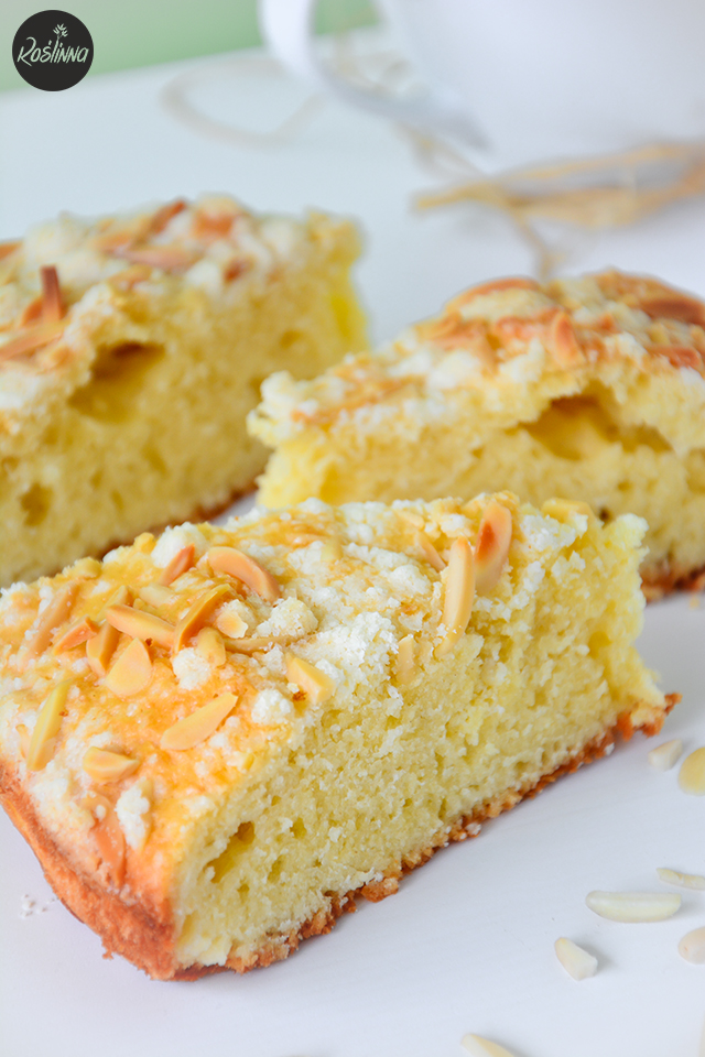 Takie przepisy i takie ciasta lubię najbardziej – czeka Cię najwyżej 10 minut roboty i cudowny jej efekt w postaci mięciutkiego, delikatnego i nie za słodkiego deseru. Dedykowany nie tylko weganom, ale również osobom, które z różnych względów nie jadają nabiału bądź jajek. Migdałowa kruszonka to nie obowiązek, ale