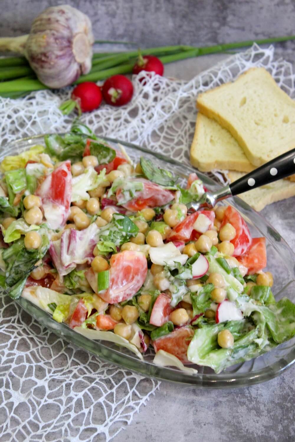 Sałatka z ciecierzycą i sosem czosnkowym Lubicie szybkie sałatki? Ja uwielbiam. Dziś…