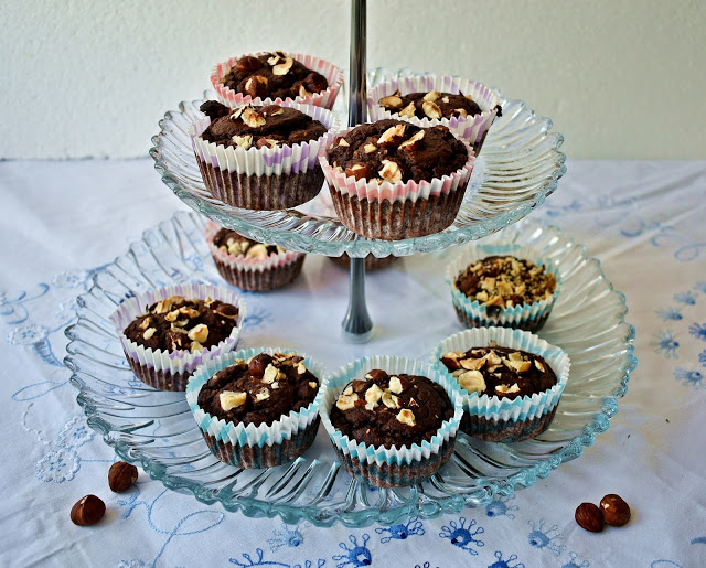 Podwójnie czekoladowe, szybkie, bardzo smaczne muffiny z chrupiącą posypką z orzechów włoskich, płatków owsianych i jagły. Na weekend, do kawki, do książki idealne, spróbujcie jeśli macie ochotę 😉