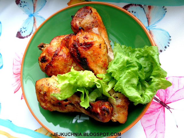 Składniki podstawowe:4 podudzia z kurczaka.Składniki marynaty:łyżka oleju,czubata łyżeczka