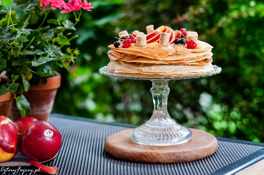…Pyszne ciasto brzoskwiniowe trio to biszkopt budyniowy nasączony sokiem z brzoskwiń przełożony…