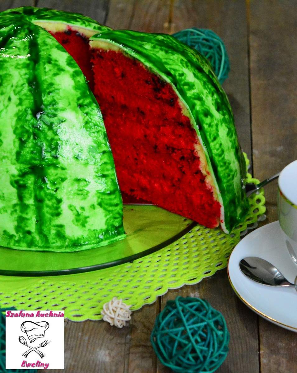 Ciasto z bitą śmietaną wykonane w bardzo oryginalny sposób. Każdy z nas chciałby osłodzić się takim arbuzem.