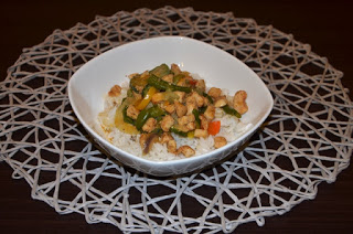 Mleko kokosowe kupiłam już dawno i zastanawiałam się jak je wykorzystać. Naszło mnie na kurczaka, którego przygotowałam ze składników, które po prostu miałam w domu. Danie, które można spokojnie podać jako lekki obiad albo bardzo sycącą kolację a jego przygotowanie zajmuje 15-20 minut.