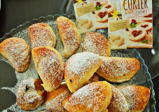 Do dużej miski przesiewamy obie mąki, dodajemy sól, cukier, wodę, rozkruszone drożdże, masło.