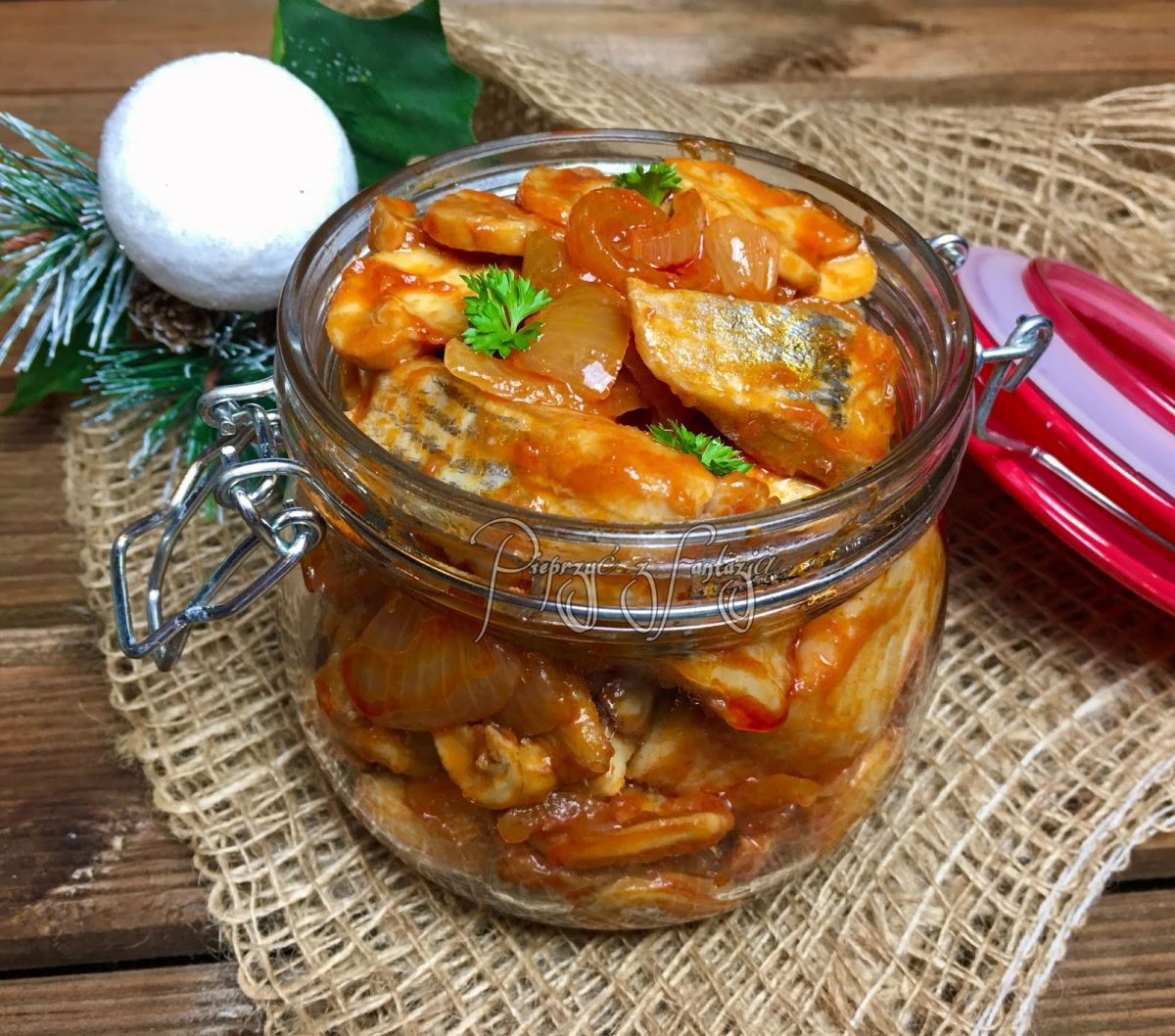 Śledzie z pieczarkami i cebulą w pomidorach to smaczna przekąska na wigilię,…