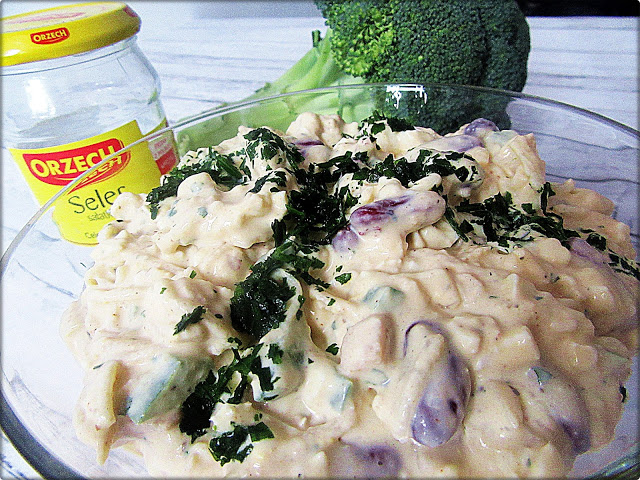 Składniki : ok 50 g makaronu ryżowegopuszka kukurydzysłoiczek selera konserwowego5 jajkoperekmajonezsól, pieprz…