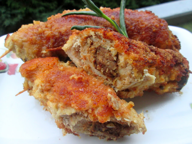 Smaczne danie na niedzielny obiad.Składniki:schab 4 plastrywątróbka drobiowa 20 dagmąka pszenna 2 łyżkisól i pieprz do smakuczosnek 2 ząbkimasło 1 łyżkaolej do smażeniabułka tarta do panierkijajko 2 szt.Wykonanie:Wątróbkę opłukać, osuszyć na ręczniku papierowym, oprószyć mąką i lekko obsmażyć na oleju z dwóch stron. Pod koniec smażenia posypać solą i