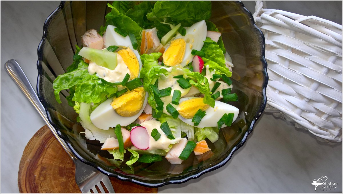 Sałatka z wędzonym łososiem i oliwkami.Pomysł na sałatkę z łososiem.Sałatka z wędzonym…