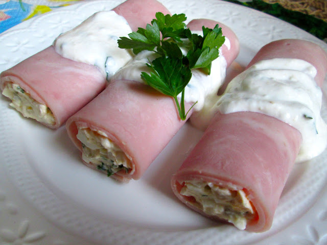 Przepyszna i prosta w wykonaniu przekąska na stół Wielkanocny.Składniki:Jajka na twardo 4 szt.Majonez 4 łyżkiOgórek kiszony 2 szt.Szynka konserwowa 4 plasterkiChrzan tarty(może być ze słoiczka) 2 łyżkiNatka pietruszki 1 pęczekJogurt naturalny 1 mały kubekSerek śmietankowy 1 kubekSól i pieprz do smakuWykonanie:Jaka i ogórki pokroić w drobną kostkę, dodać serek