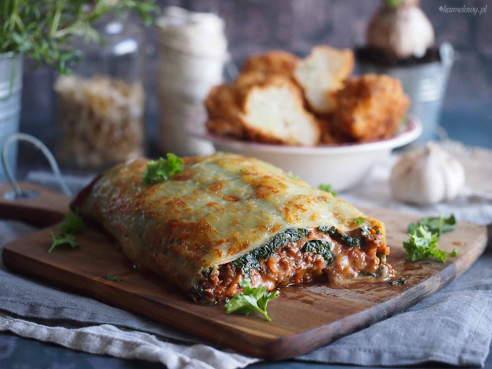Dziś przedstawiam coś obłędnie pysznego. Jakiś czas temu zobaczyłam na fejsie filmik z przygotowaniem tego dania ze strony Tasty, i poczułam, że muszę to zrobić. W pierwszy wolniejszy weekend zabrałam się do dzieła i powstała przepyszna rolada z ziemniaków zapieczonych w parmezanie, nadziana sosem mięsnym, śmietankowym szpinakiem