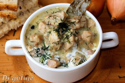 Gulasz z żeberek wieprzowych w sosie śmietanowo-koperkowym