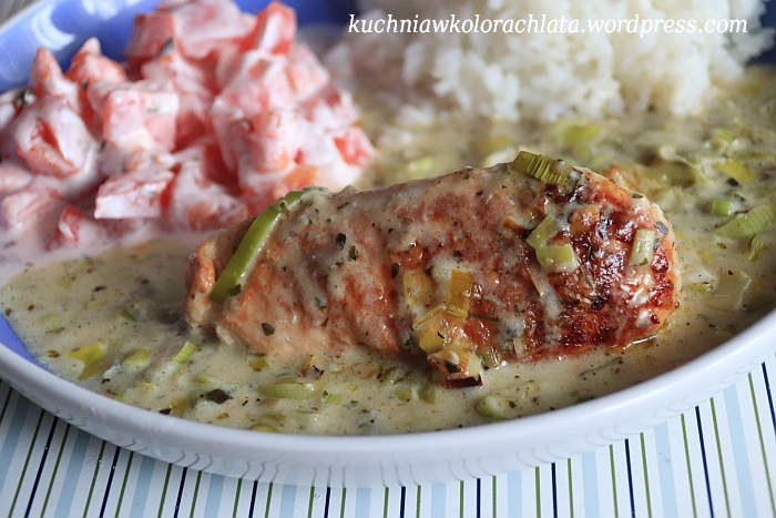 Kurczaka podałam z ulubionym kleistym ryżem arborio i sałatką z pomidorów. Składniki…