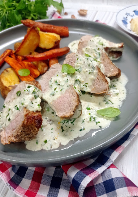 Polędwiczki wieprzowe w kremowym sosie z dodatkiem sporej ilości pesto bazyliowego. Pomysł…