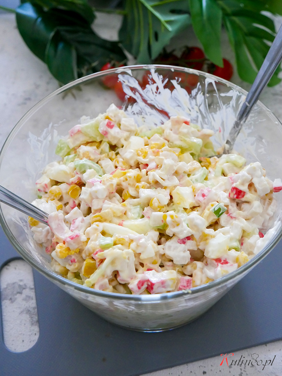 Sałatka z paluszkami krabowymi to bardzo prosta i pyszna propozycja na kolację.…