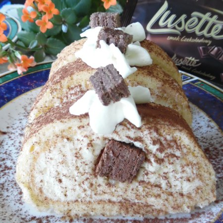 Rolada biszkoptowa z kremem mascarpone i wafelkami Lusette