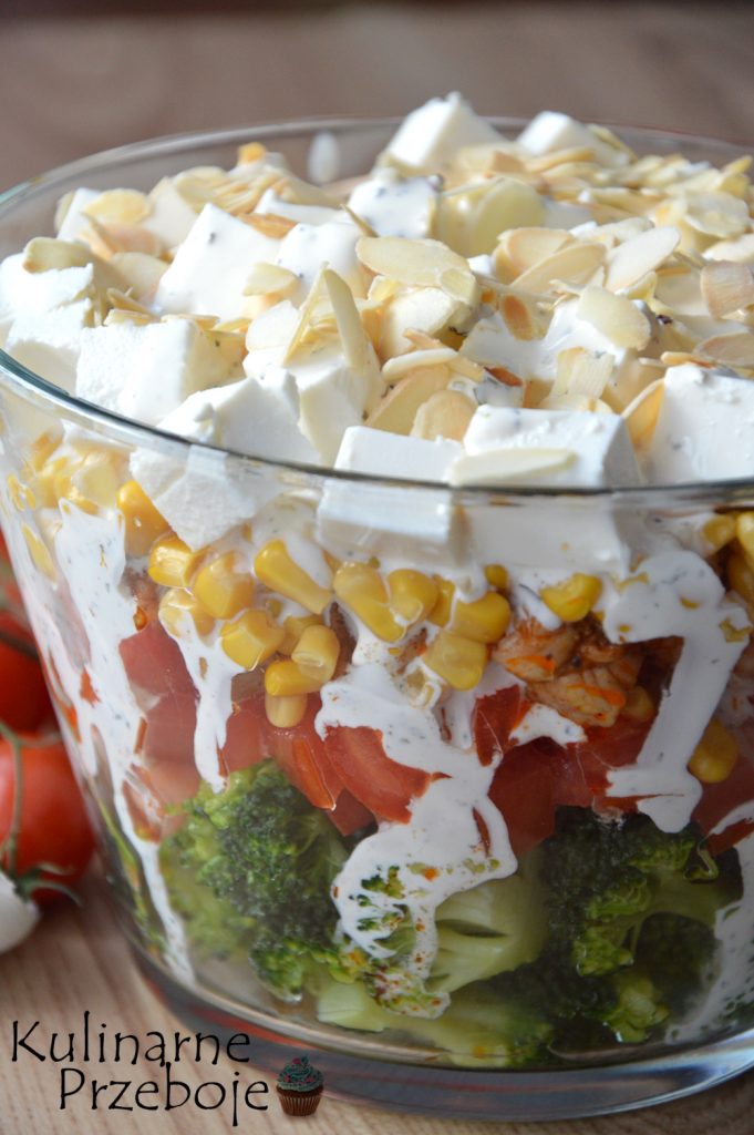 Sałatka warstwowa z brokułem i kurczakiem – to sałatka, która pokochacie od pierwszego kęsa! My ją wręcz uwielbiamy 🙂 Sprawdzi się idealnie na wszelkiego rodzaju imprezy, czy kolację. Połączenie brokuła z kurczakiem i przepysznym domowym sosem czosnkowym to strzał w dziesiątkę, a całość uwieńczona uprażonymi migdałami sprawia,