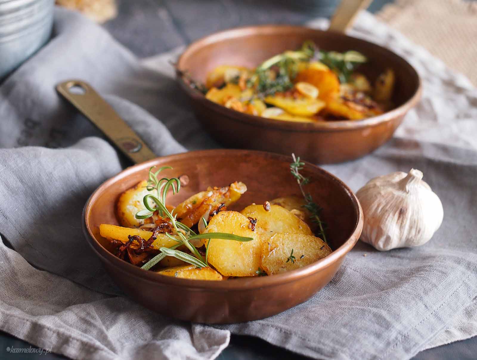 Dziś proponuję doskonały dodatek do każdego dania głównego. Smażone ziemniaki z cebulką, czosnkiem i ziołami zawsze będą hitem! Ważna też jest metoda ich przygotowania i tutaj przyszedł mi z pomocą Gordon Ramsay w swojej cudownej książce “Gordon Ramsay’s Ultimate Home Cooking”, którą też bardzo polecam. Znajdziecie tam masę