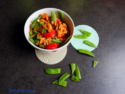 Ciepła sałatka z fasolą i makaronem owsianym