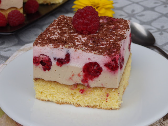 Proste ciasto łączące dwa smaki-kawę i maliny. Masa kawowa jest z sera…