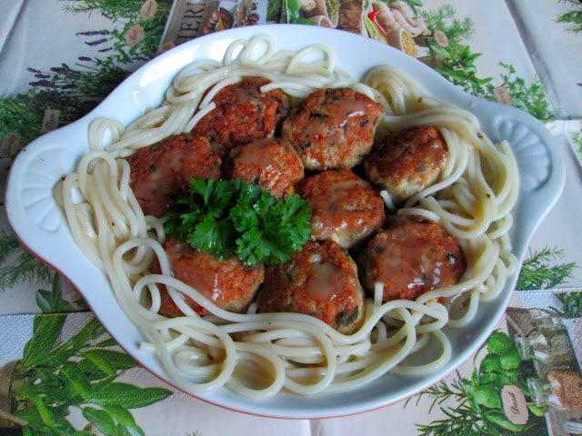 Mój ostatni przepis na spaghetti. Z klopsikami smakuje wybornie. Składniki:35 dag mielonego mięsa wieprzowego2 ząbki czosnku2 łyżki bułki tartej3 łyżki posiekanej natki pietruszkicytryna1 jajko150 ml białego wina wytrawnegomakaron spaghettisól i pieprz do smakuWykonanie:Makaron ugotować według opisu na opakowaniu. Mięso wymieszać z jajkiem, bułką tartą, zmiażdżonym czosnkiem, natką pietruszki, sokiem
