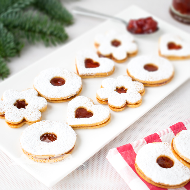 Kruche ciasteczka z okienkiem przełożone dżemem truskawkowym. Pyszne, delikatne, kruchutkie i do…