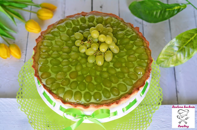 Krucha tarta z delikatnym kremem waniliowym, zieloną chłodzącą galaretką i świeżymi, orzeźwiającymi winogronami to świetna propozycja sezonowego deseru, który idealnie sprawdzi się na każdym spotkaniu przy kawie w gronie najbliższych.