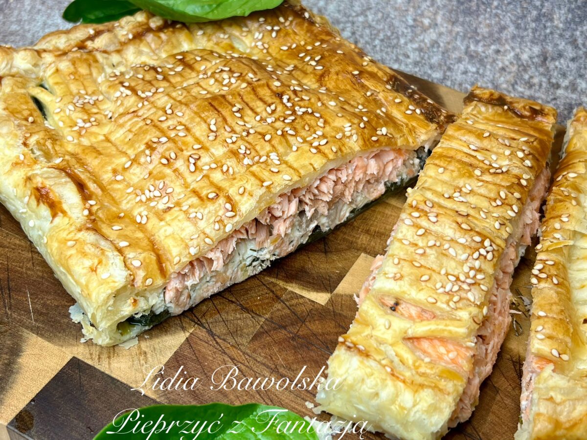 Przepis na smacznego łososia zapiekanego w cieście francuskim z dodatkiem szpinaku i…
