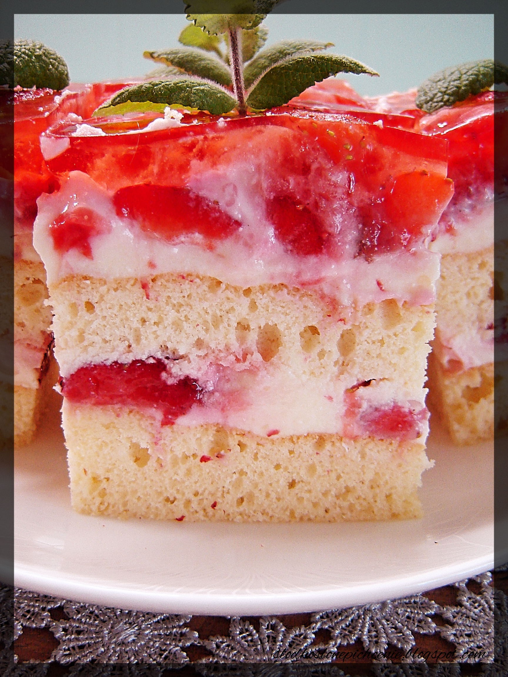 Sernik gotowany z truskawkami, czyli blaty ciasta przełożone kremową, rozpływającą się w…