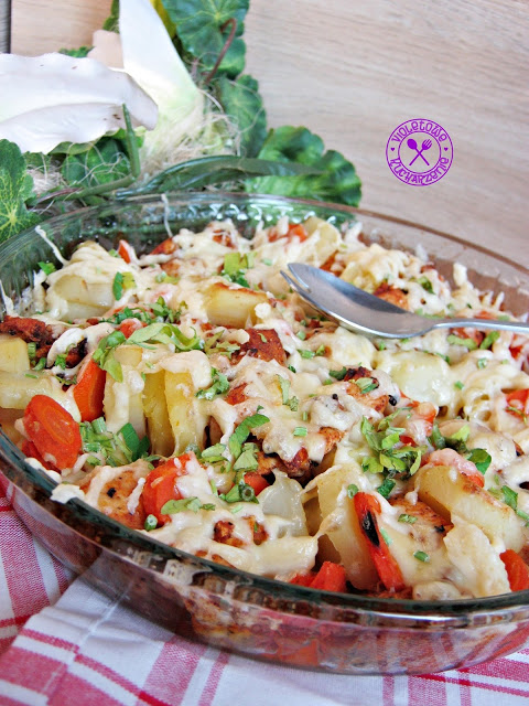 Aromatyczna zapiekanka z kurczakiem i warzywami. Mięso jest obłędne w smaku. W…