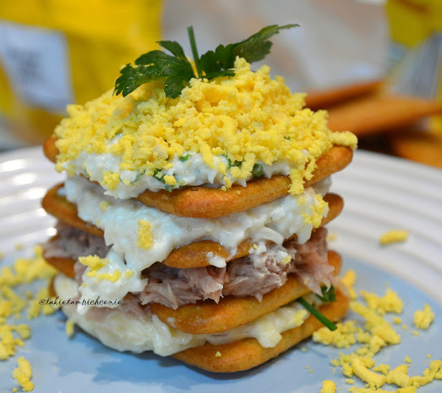 Torcik sałatkowy-Sałatka z tuńczyka na krakersach, idealna na wszelakie okazje. Wygląda świetnie i doskonale smakuje!