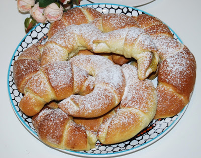 Drożdżowe rogaliki z nadzieniem z rabarbaru. Bardzo mięciutkie, puszyste i smaczne. Mają…