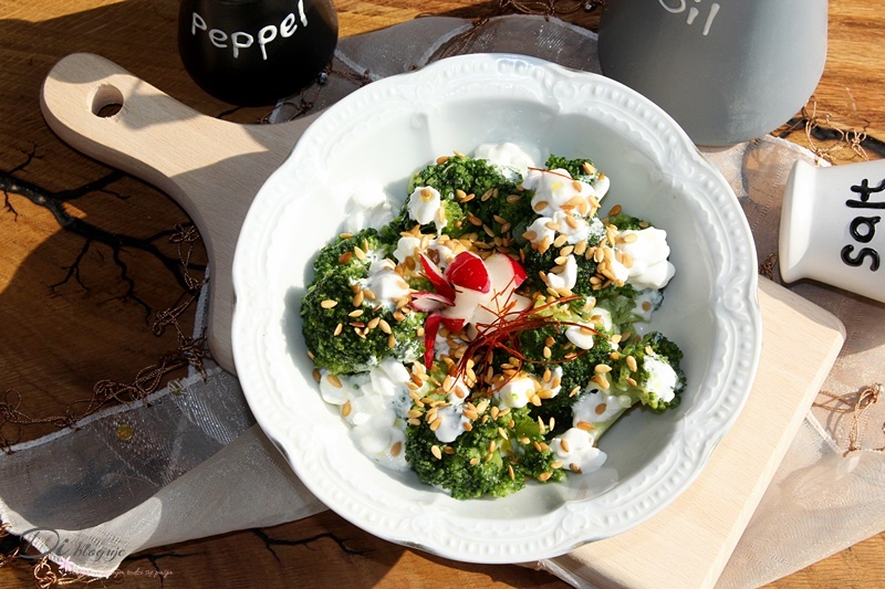 Sałatka jest bardzo prosta w przygotowaniu i doskonale sprawdzi się jako zdrowa i lekka przekąska.Jeśli jesteście na diecie odchudzającej to do takich sałatek warto dodać olej lniany (*), który oprócz swych właściwości zdrowotnych – usprawnia procesy spalania tkanki tłuszczowej oraz