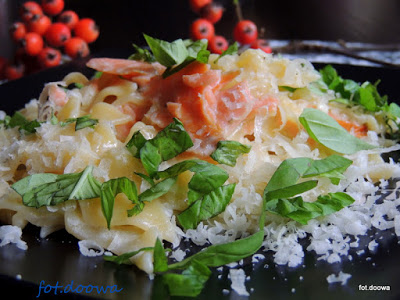 Tagiatelle z wędzonym łososiem i bazylią