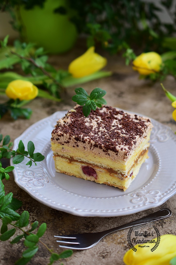 Prawdziwa słodycz bez pieczenia, na herbatnikach z kremem z batoników milky way z warstwą kajmaku, kremu budyniowego i wiśni całość posypana tartą gorzka czekoladą, czy można sobie wyobrazić coś lepszego do słodkiego poczęstunku ? Poezja! Dla słodkich łasuchów. Moja kombinacja i