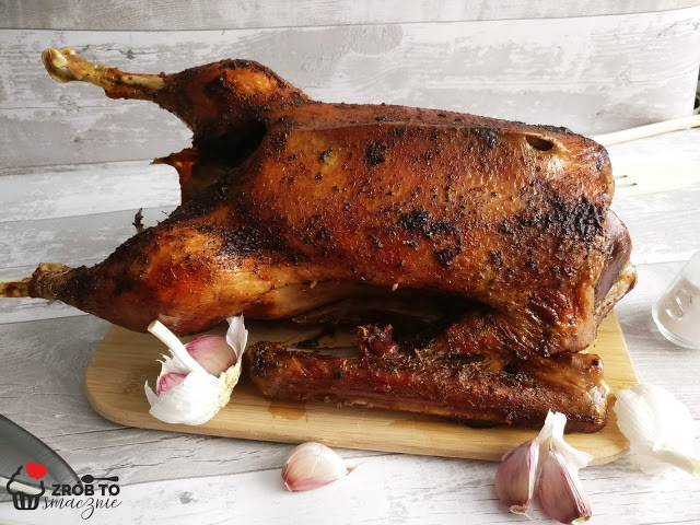 GĘŚ PIECZONA W CAŁOŚCI (MARYNOWANA W CZOSNKU I MAJERANKU)